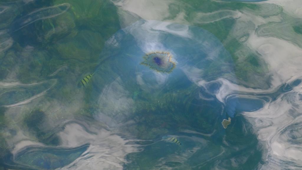 Seht Ihr den Fleck bei den Fischen? Eine „Träne der Arizona“.
