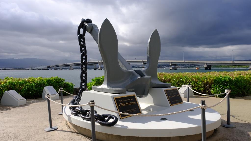 Der Anker der USS Arizona wurde gehoben, den seht Ihr hier. Das Schiff hatte drei: einen für ruhiges Wetter, zwei bei rauher See, der dritte war in Reserve.