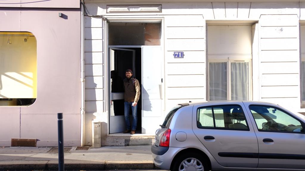 Today I will tell you a bit about our lodging for a change. Our street you already saw in the first St. Etienne entry. And we had found it easily two days ago. And the right street number as well. Then out of the key safe we got two keys … but then the door would not open with either one of them. Torben then finally had the right idea: the key chain is a dongle with which you can open the door, via the sensor in the wall!