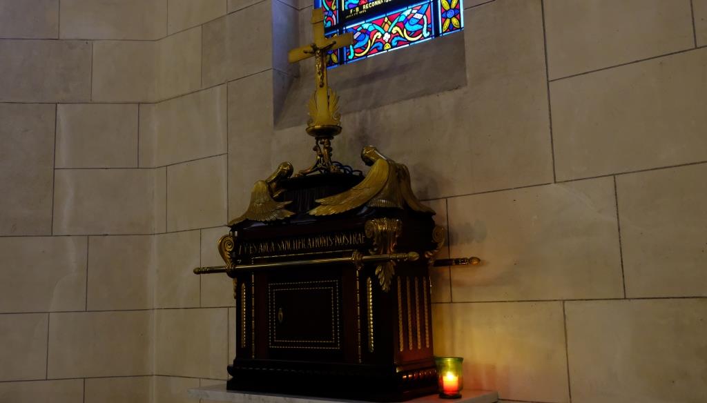 Denn wir hatten gelesen, dass hier eine Nachbildung der Bundeslade steht. Diese Engel-gekrönte Truhe hatten wir beim letzten Besuch übersehen.