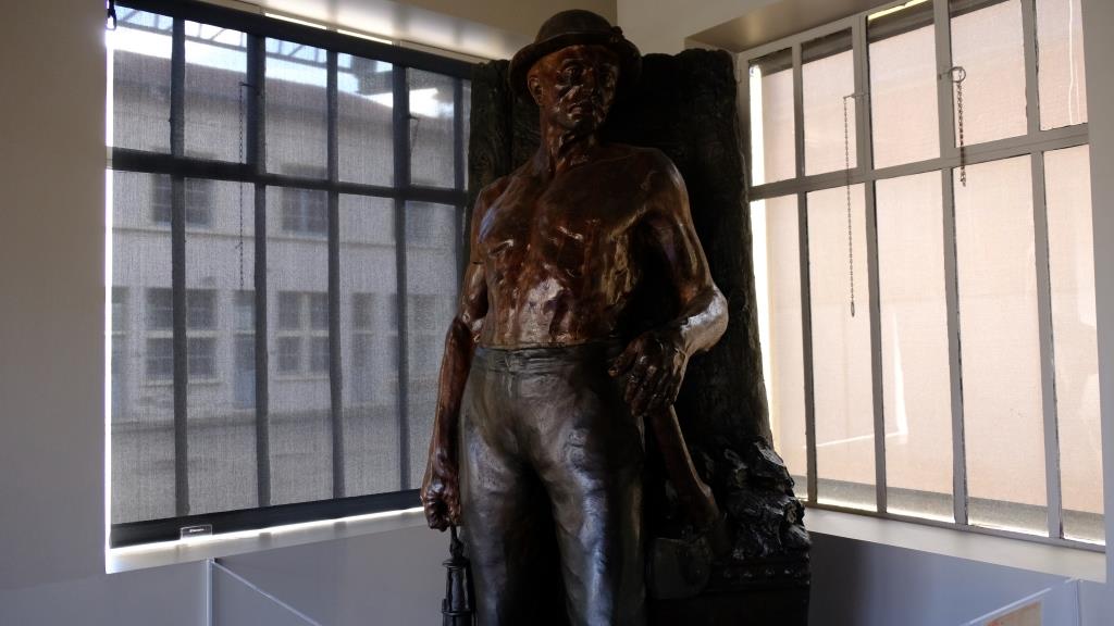 Es gab auch Kunstgegenstände zu sehen, hier die Figur des Minenarbeiters, als eine Galionsfigur der Arbeiterklasse und als Symbol der industriellen Revolution.