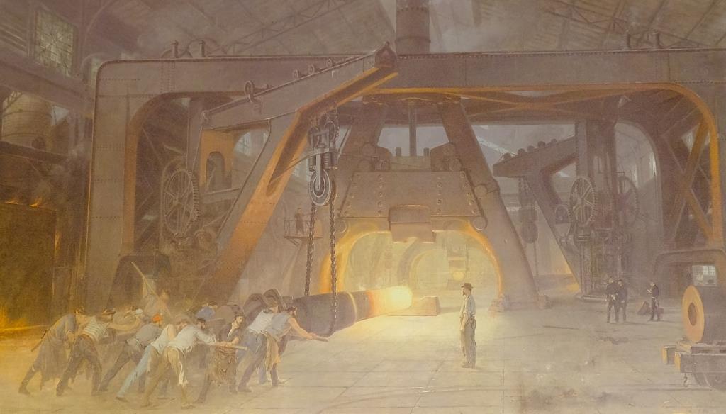 This painting shows how a part is forged for the Navy, it was painted 1889 by Joseph-Fortuné Layraud.