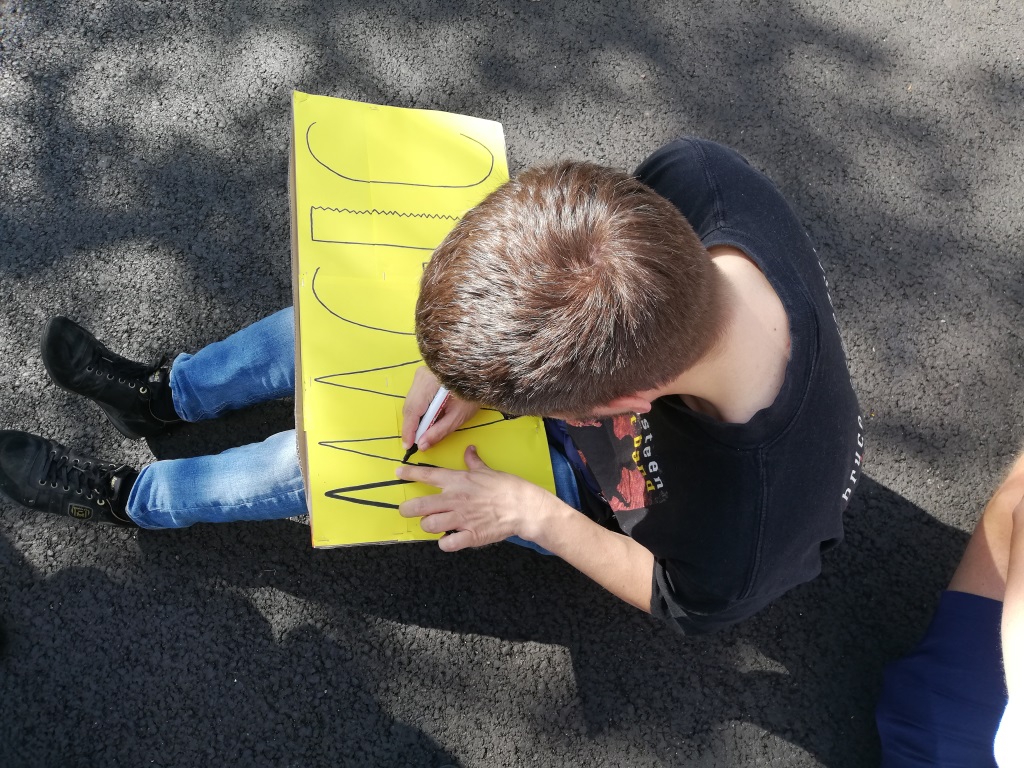 Um acht beginnt das Konzert, um vier haben wir uns angestellt – also noch viel Zeit zum Schild malen.