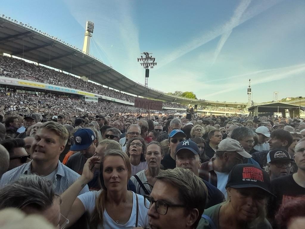 Hier im Ullevi Stadion hat er – unter anderem – auch 1985 schon mal gespielt und hält den Zuschauerrekord von 64.312 Leuten. (2005 wurde bei einem Umbau das Maximum auf 59.000 reduziert) – Übrigens: damals ist das Stadion fast zusammengebrochen, wegen der rhythmischen Bewegungen von Zehntausenden Leuten, und wegen des Lehmbodens, auf dem das Stadion gebaut ist. Die Erschütterungen waren seinerzeit noch in 400m entfernten Wohngebäuden zu spüren.
