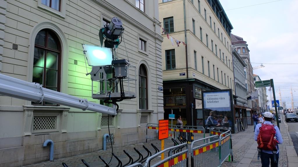 We walk on. And here maybe they magically create some sunshine for a film shooting?