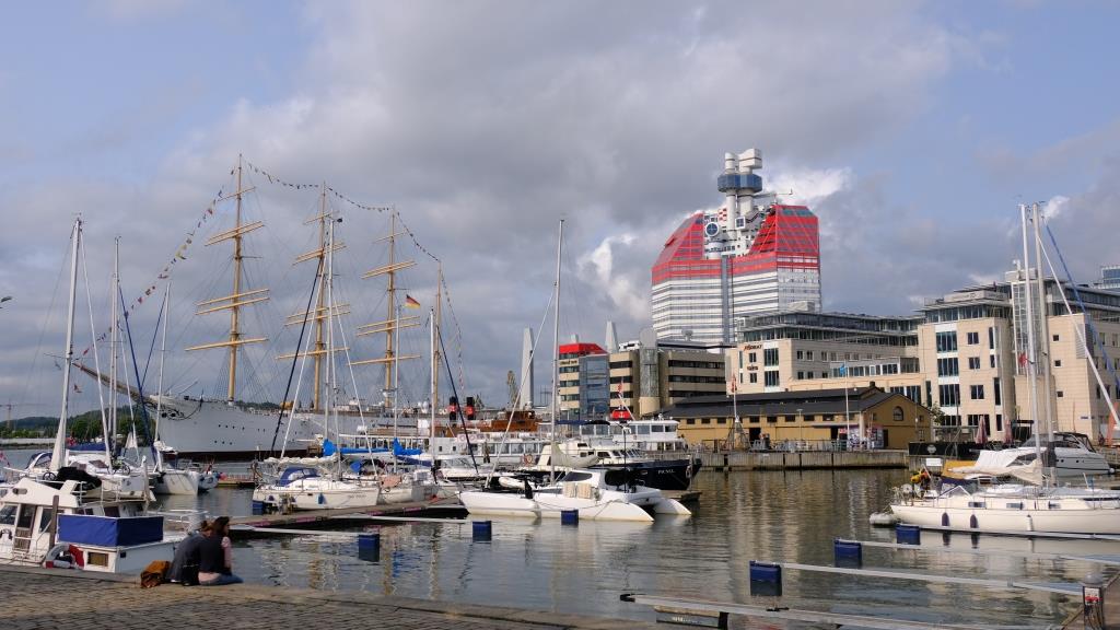 Wir sind am Hafen entlang gegangen. Vorbei am „Lippenstift“.