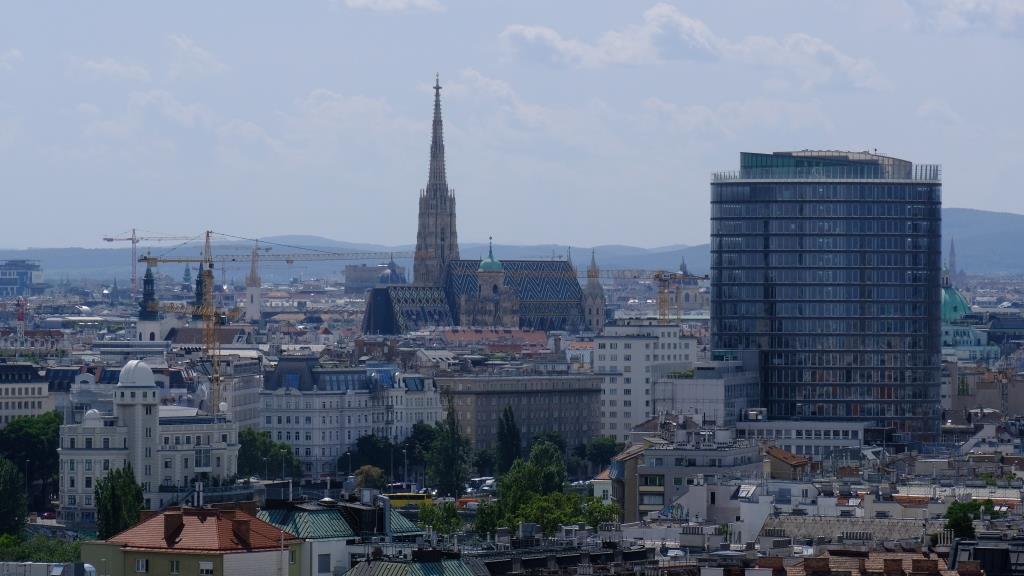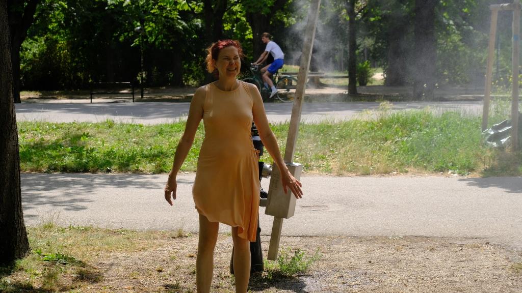Frisch gestärkt sind wir weiter. Es ist wieder sehr heiß und wir haben die hier lieben gelernt: In Wien gibt es „Sommerspritzer“: Sprühduschen auf Hydranten.