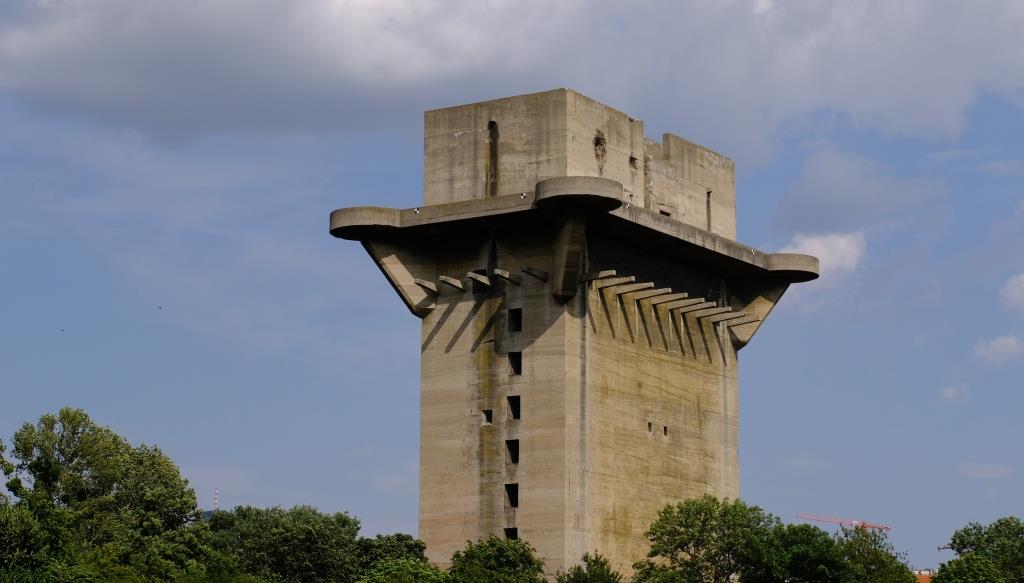 In Augarten you see two of six anti-aircraft towers. The gun tower and then here the control tower. The towers were built between 1942 and 1945, by forced labourers.