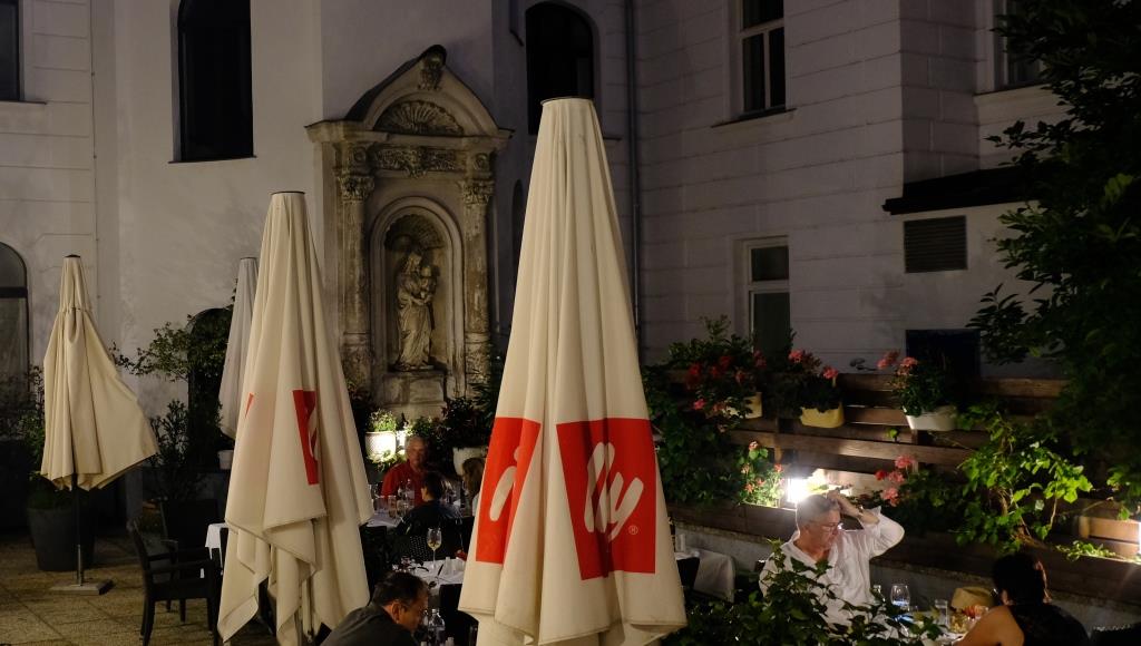 That way we could nicely go out for dinner in the evening. The Marienhof has existed since 1990, and it also has tables in the inner courtyard.
