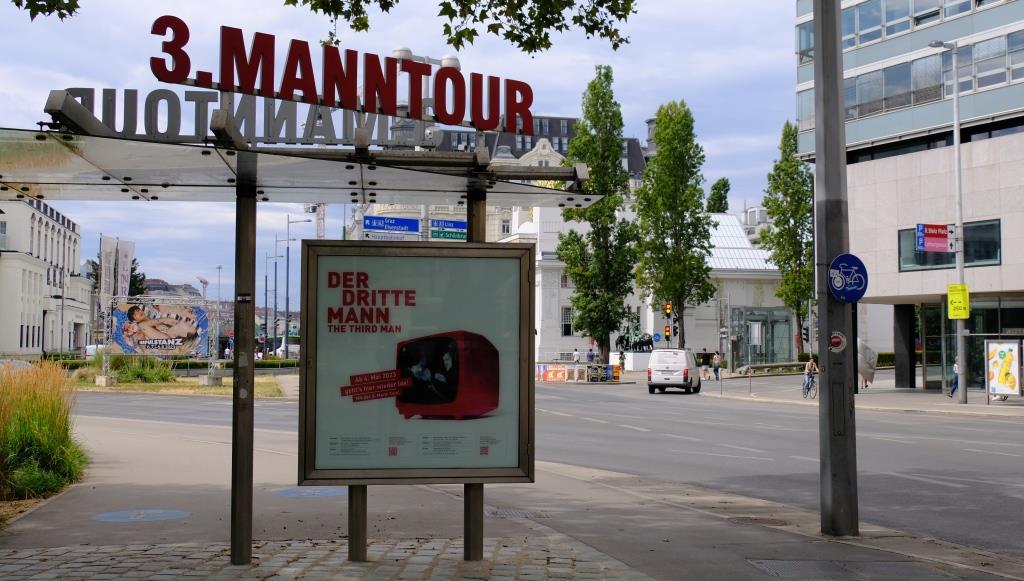 Beim nächsten Halt haben wir dann erfahren, was hier unten alles gedreht wurde. Hier seht Ihr aus Der dritte Mann, wie Orson Wells genau den Eingang nutzt, den wir auch genommen haben.