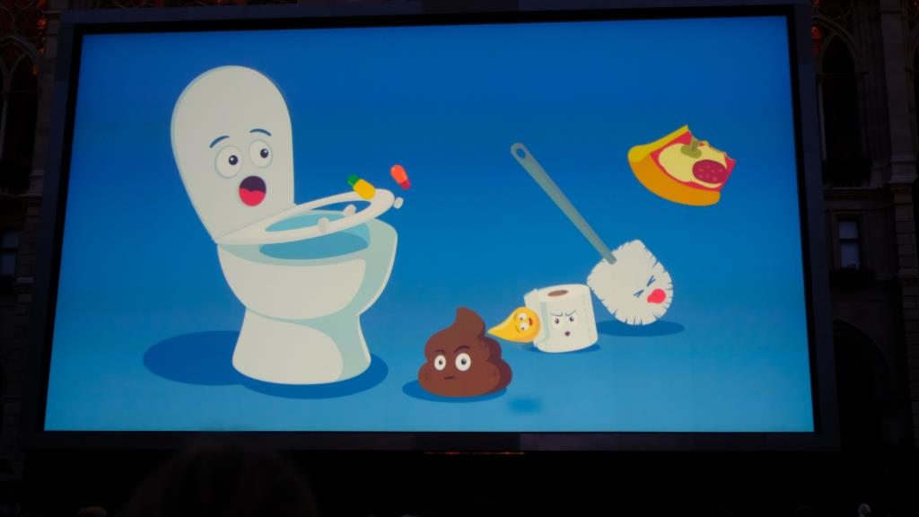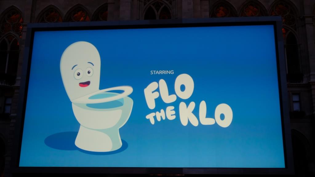 Vor allem nach der Kanalisation gestern ist das der perfekte Auftakt, Euch zu erzählen, was uns zu diesem Thema in Wien so begegnet ist … Wir waren ja ein paar Mal abends zum Musik hören beim Rathaus. Da gab es immer einen Vorfilm: