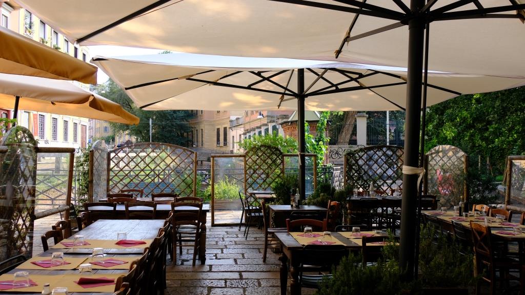 Und daneben Tische eines Restaurants, also essen wir jetzt zu Abend. Tschüß!