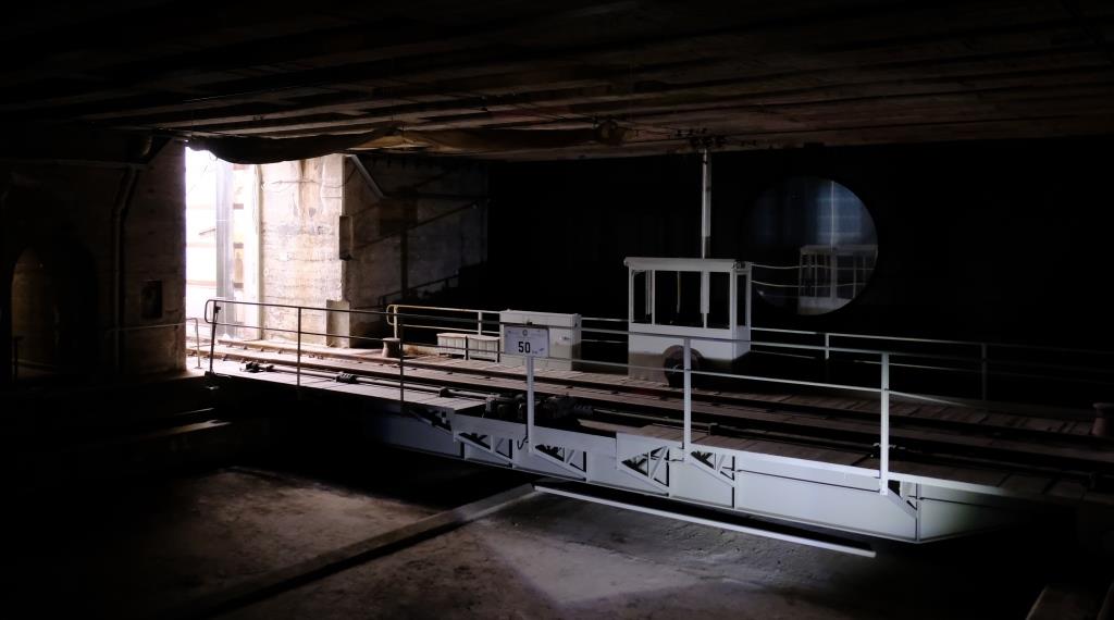 Die Wagen konnten mit einem Fahrstuhl auf die Ebene der „normalen“ Gleise gehoben werden.