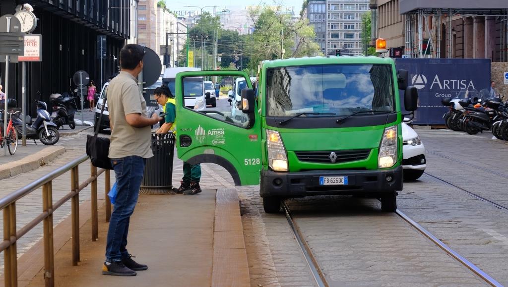 Ja, wir hatten für heute große Pläne … aber das hat nicht so ganz funktioniert. Zuerst sind wir bewusst „in die falsche Richtung“ gelaufen: Wir wollten dann mit einer der alten Straßenbahnen „zurückfahren“, zum hinteren Ende eines Parks, dort ein paar Sachen besichtigen, durch den Park zum Castello Sforzesco wandern, dann das ansehen … Aber die Straßenbahn kam nicht!
