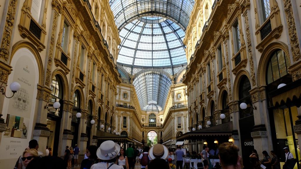 Okay, one last stop. On an earlier photo you might have noticed that to the left of the cathedral, there is a huge gate. That is the entrance to the luxury shopping promenade Galleria Vittorio Emanuele II.