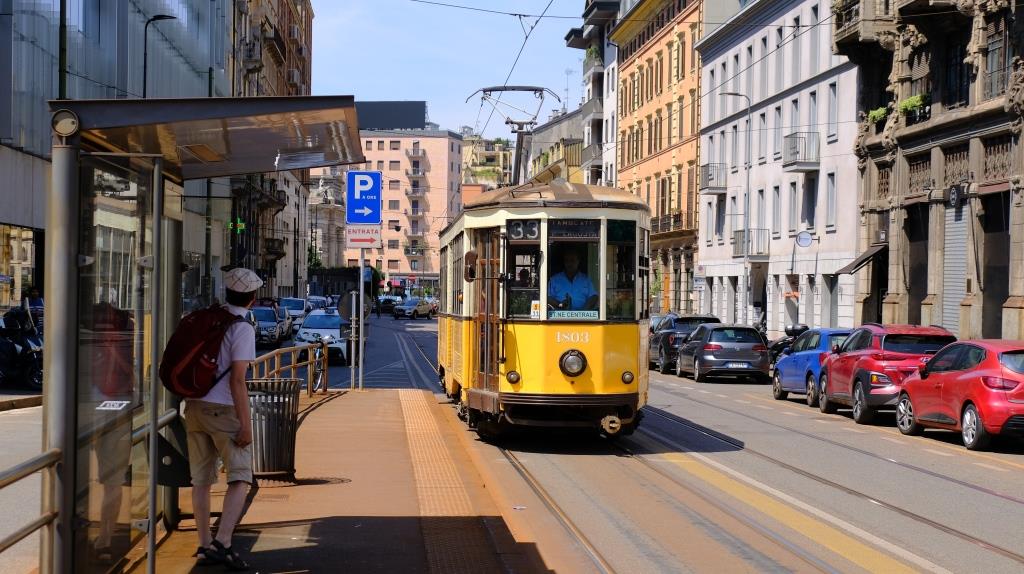 Bahn 1803, das heißt, das ist eine der Serie Ventotto (1501 – 2002 sind die Nummern). Die wurden hergestellt zwischen 1927 und 1930. Das heißt, dass sie alle von Anfang an rechts fahren durften, die Umstellung vom Linksverkehr fand 1926 statt.