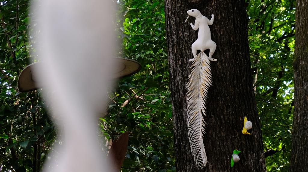 … aber auf der anderen Seite steht doch glatt ein Kartenhaus! Eine Kunstinstallation, die wohl schon eine Weile steht, die Farben auf den Karten sind recht verblichen.
