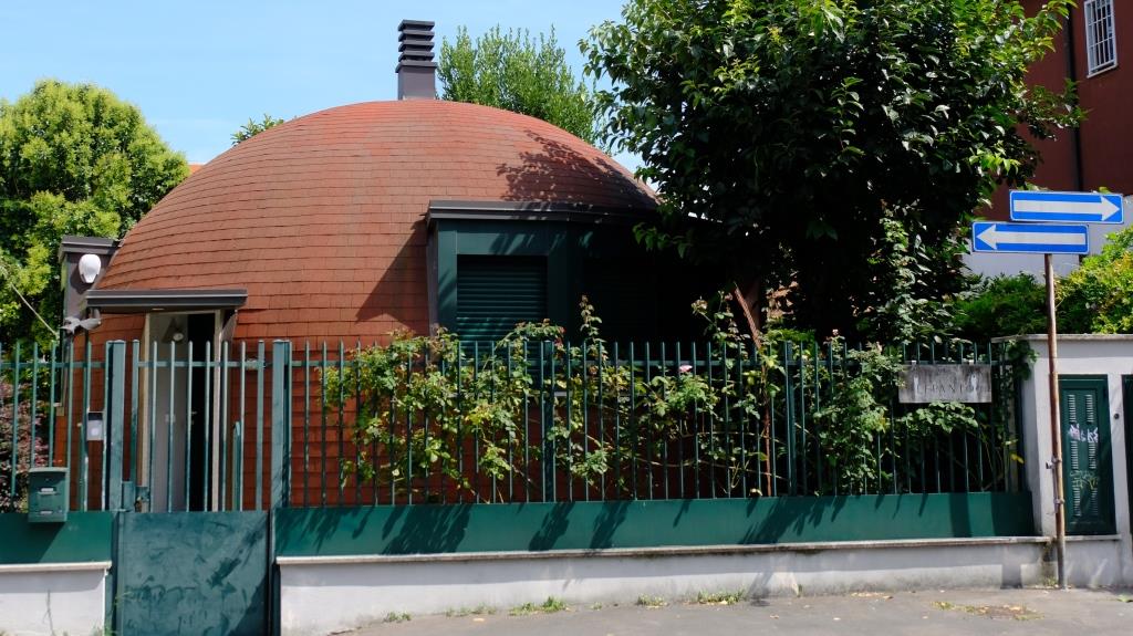 Wir sind hier, um von außen einen Blick auf eines der Iglu-Häuser werfen. 12 davon wurden 1946 von Ingenieur Mario Cavalle gebaut, heute stehen noch acht. Auf zwei Stockwerken hat man 50 m² Wohnfläche …
