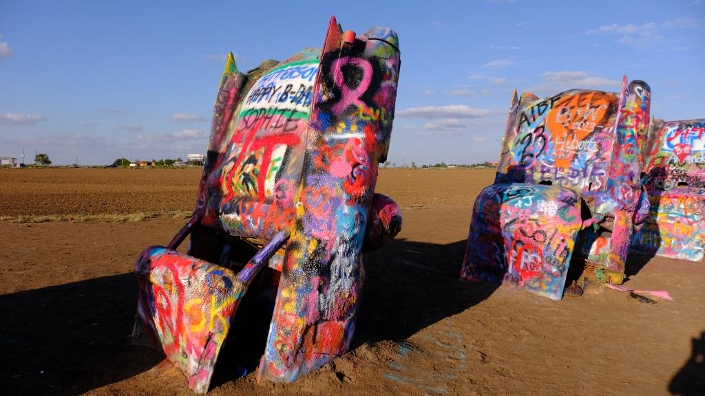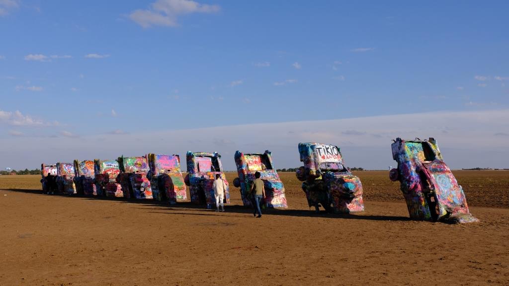 Yes, they are all half buried! But it gets even better. When you drive on for a bit, you get to the cadillacs: