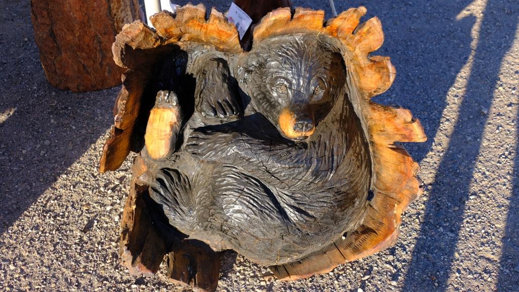 Außerdem gibt es auch noch Leute, die mit Kettensägen Figuren erstellen. Heute vormittag wurde der erste Schwung versteigert.