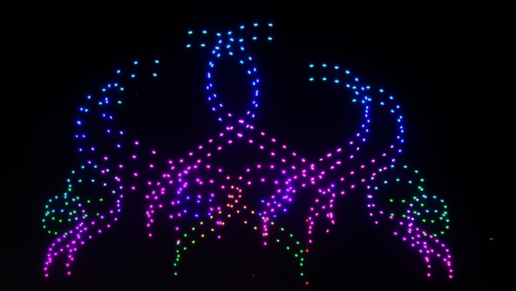 Auch für nach den Gasballons war die Dronen-Licht-Show geplant, die wurde jetzt auch vorgezogen.