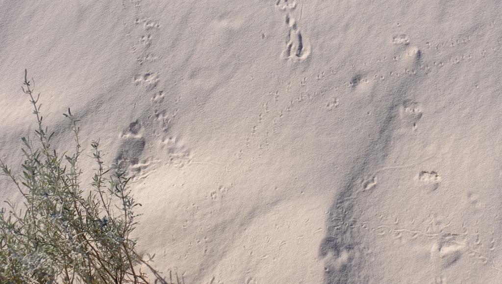 Es gibt hier auch ein paar Tierchen, aber tagsüber sieht man nur ihre Spuren.