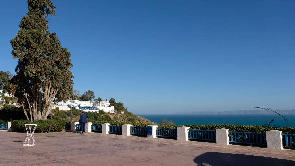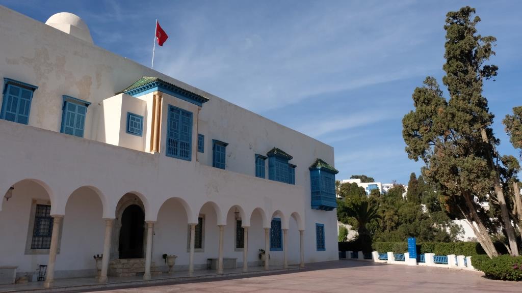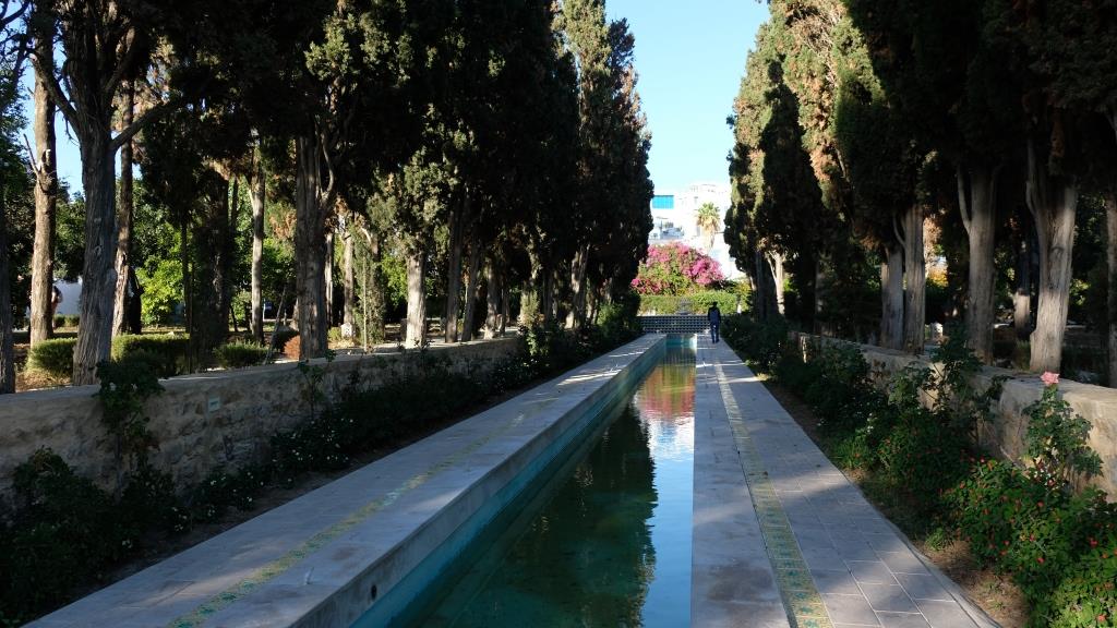Ein zweiter schneller Blick zum Palast Ennejma Ezzahra. Gestern gab es dort eine Veranstaltung, also standen vor dem Gebäude lauter Autos und Leute, und innen konnte man nicht alle Räume besichtigen …