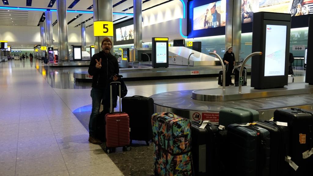 But: no suitcases for us, they’re coming on the next flight in an hour, so we had to sit around the whole time… but then they were delivered first!
