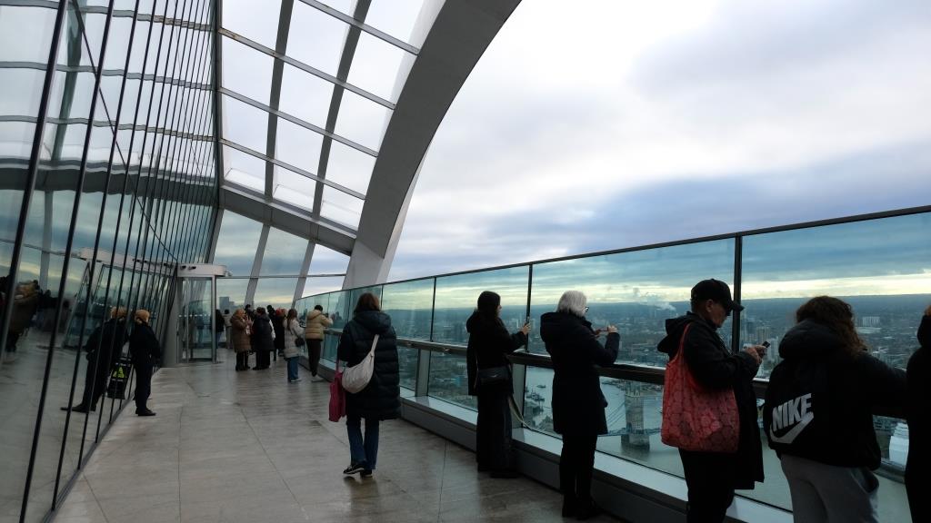 Auf einmal wird es ganz hell und man hat einen 360° Blick über London, aus 109 m Höhe.