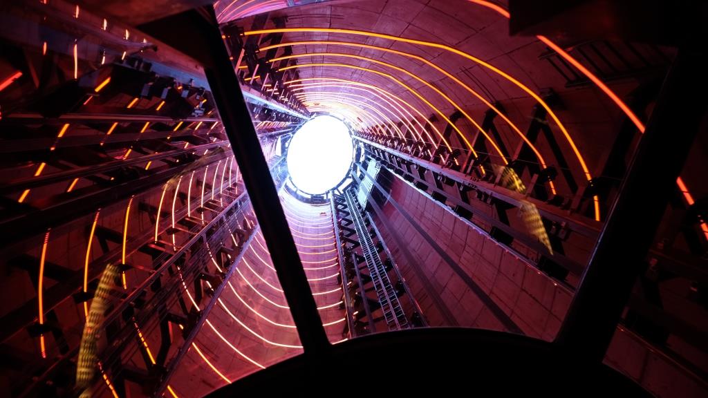 And then we’ll take the elevator INSIDE the chimney, look up!