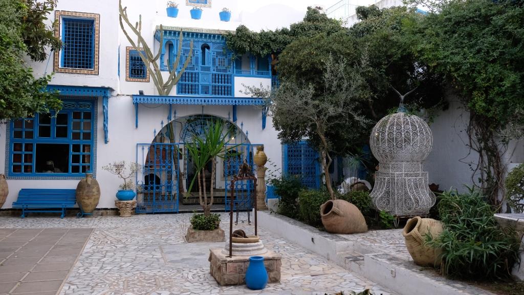 Dann Dar El-Annabi, wo man sehen kann, wie wohlhabende Leute gewohnt haben, da ist die Adresse in Google Maps falsch, am einfachsten: Man geht die Straße den Berg hoch, die zum Palast Ennejma Ezzahra geht – den Ihr Euch sowieso ansehen müsst! – dann einfach weiter den Hügel hoch gehen, dann kommt eine Querstraße, rechts ist das Art Café, und direkt geradeaus ist der Eingang zu Dar El-Annabi.