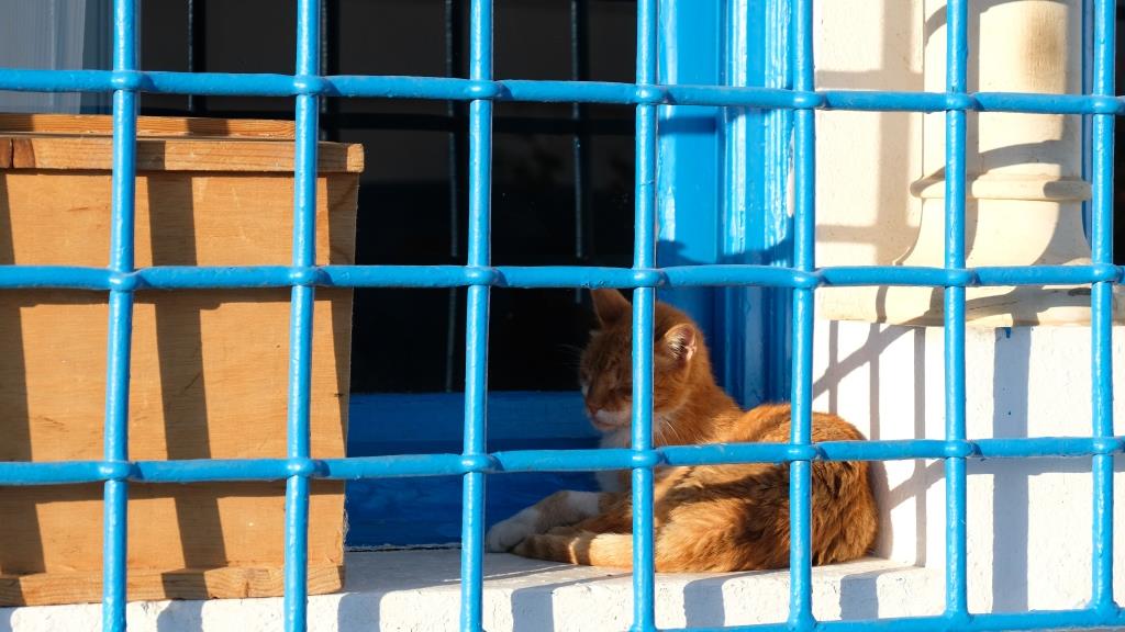 Jetzt noch ein paar Bildchen unserer Unterkunft: Unsere Haustür ist gelb, was in diesem Stadtteil, der fast ausschließlich in weiß und blau gehalten ist, heraussticht.