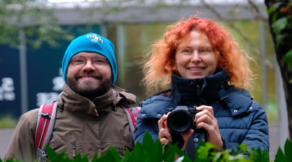 Jetzt aber: Man kriegt sie nur schwer zusammen auf ein Foto, aber hier könnt Ihr sie sehen: links und höher: Papa, rechts und niedriger: Mama.