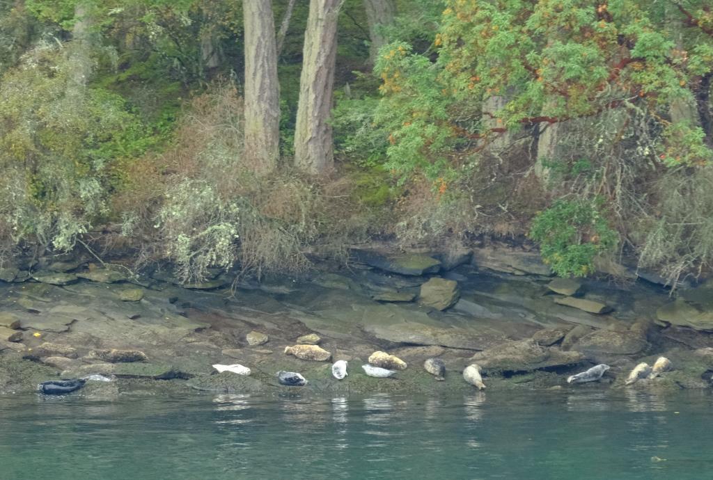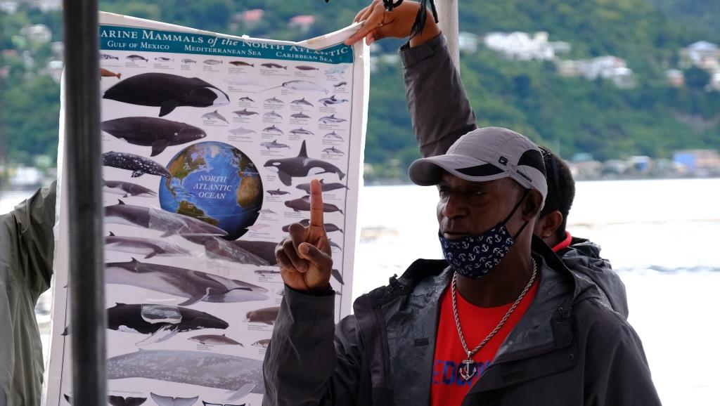 Wir sind ein Stück weit rausgefahren, dann gab es einen Stopp, damit Francis uns erklären konnte, welche Wale es hier gibt. Grindwale zum Beispiel.