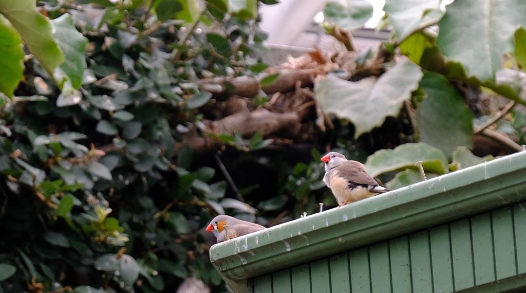 Here now finally: You can hardly get them both on a photo, but here you can see them: on the left and higher up: Papa, on the right and lower down: Mama.