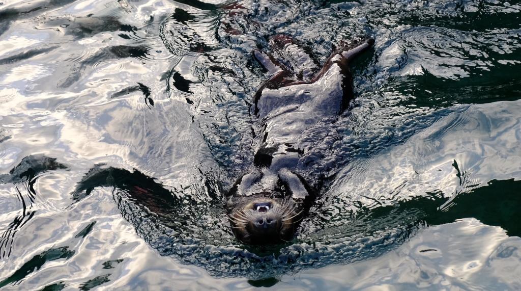 First we did not see anything except for those little foggy puffs … and me least of all, I was standing at the wrong spot, and at the front of the boat, where you had the best view, people closed ranks. But then one lady turns around and waves me over. I then kneeled in front of her, that way we could both see something. Then I spotted the back fin.