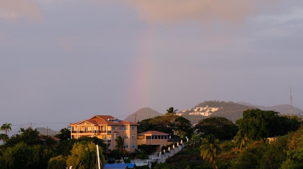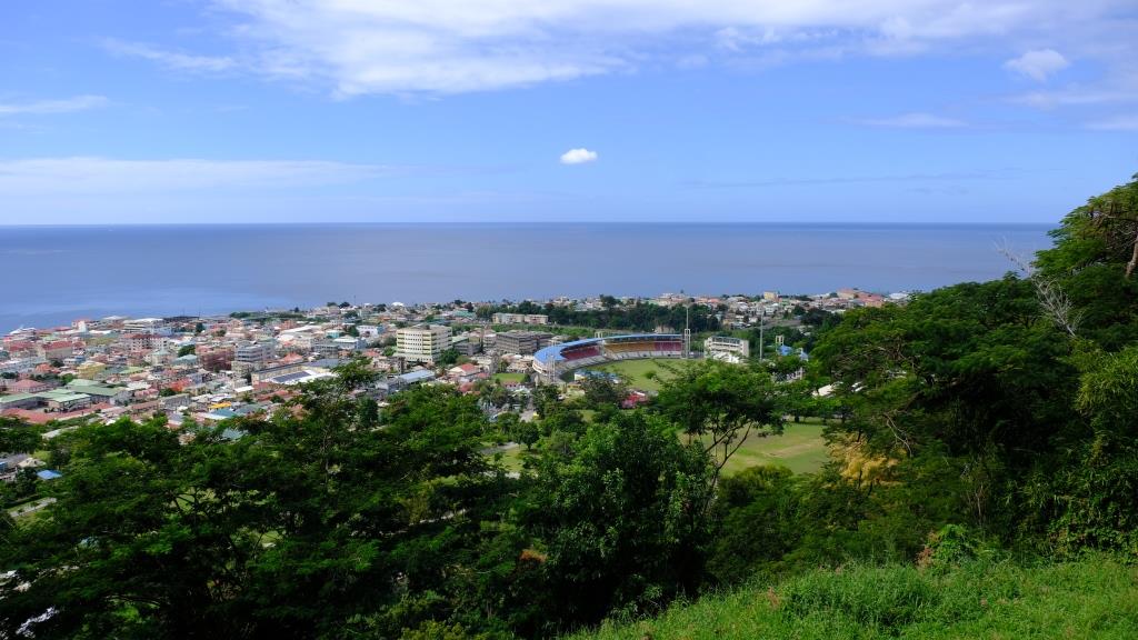 The first stop was on a mountain behind the capital Roseau, Morne Bruce. From there you then had a nice view down across the city and the ocean. By the way: here in the stadium they mainly play cricket, then also football, and larger ceremonies are held here.