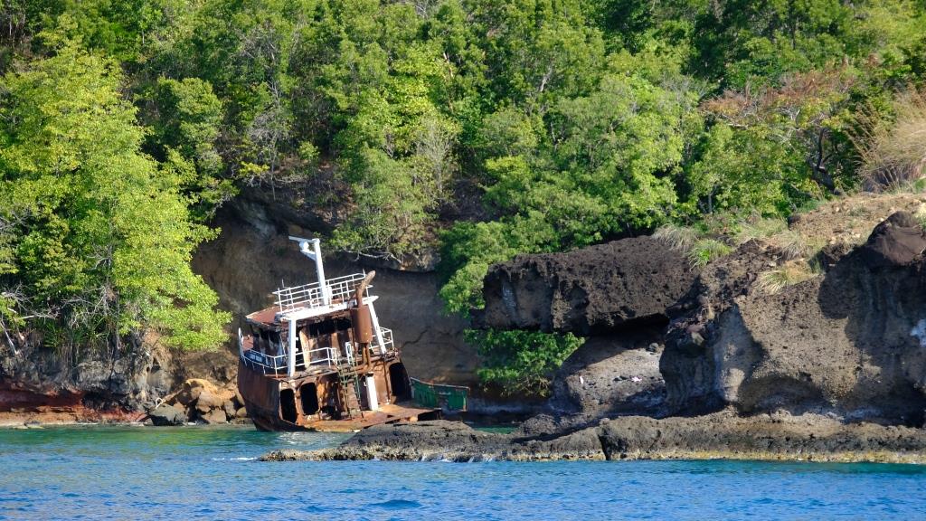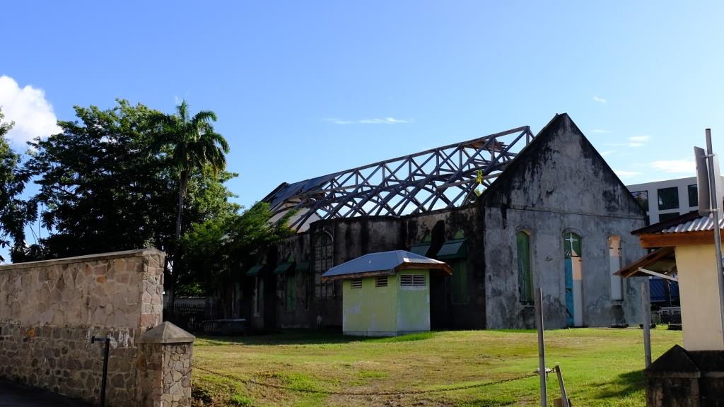 Auf dem Weg zurück zum Schiff sind wir dann an einer zerstörten Kirche vorbeigekommen. Moira hat uns erzählt, dass sie 1976 bei einem Hurrikan zerstört wurde, dann wieder aufgebaut … und dann kam 2017 der nächste Hurrikan!