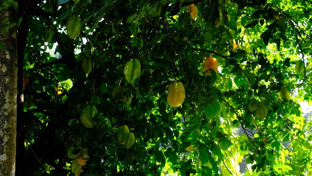 Dann gings weiter und wir haben am Wegesrand soviel gesehen … Kokospalmen, Bananen, oder hier Sternfrüchte – Moira nannte sie five-star-fruits (fünf-Sterne-Früchte).
