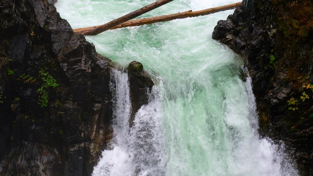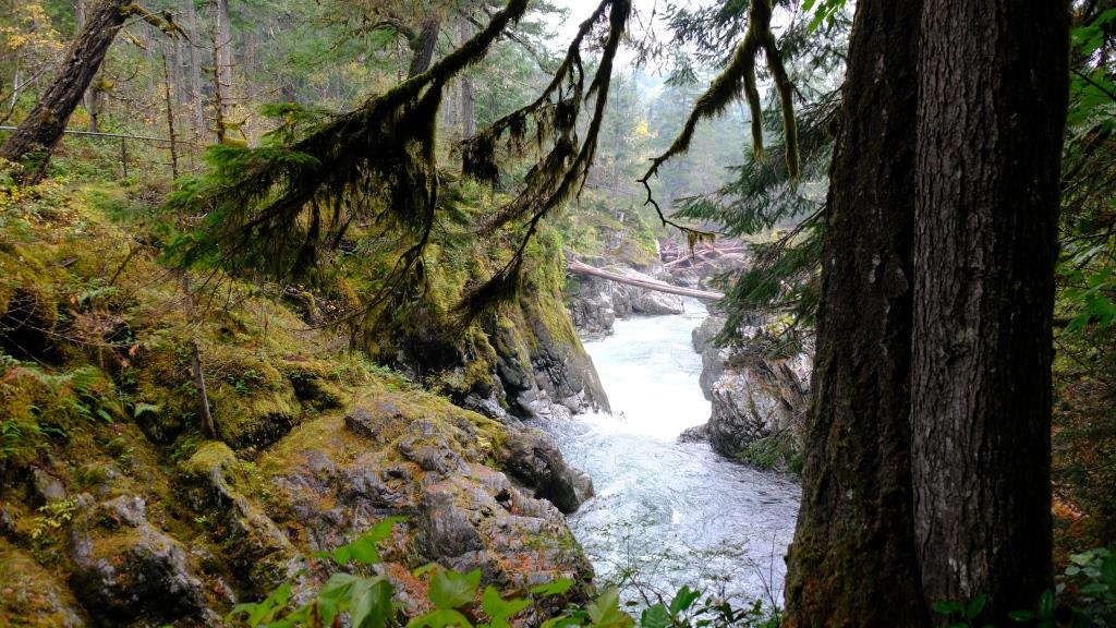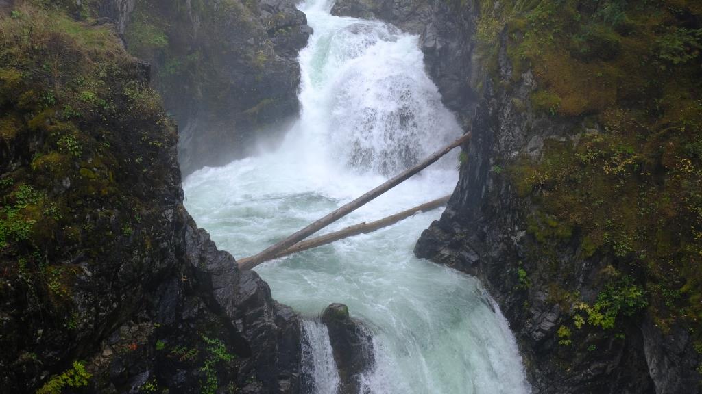 Bei dem Wetter dann doch nicht … Also sind wir weitergefahren, wieder zum Goldstream Provinical Park. Denn da gibt es auch eine kleine Wanderung zu einem Wasserfall, doch die konnten wir gestern nicht machen, weil wir auf der falschen Seite der Straße waren.