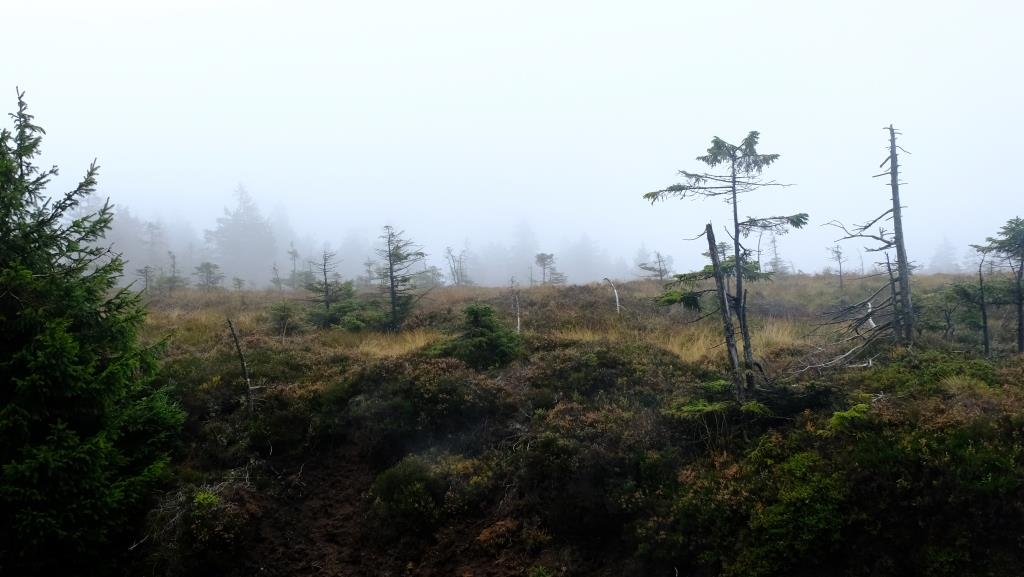 All the time – in the course of our trip – I was warned of the „Brocken Ghosts“. And here you can see them now: Imagine snow covered little fir trees and bushes, but also buildings, in that terrible fog. Added to that a bit of wind that moves the branches – and there is your perfect ghost!