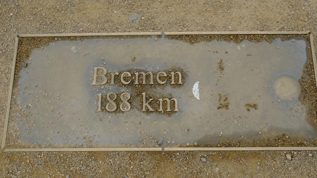 Da ich das erste Mal da war, musste ich mir diese „Brockenuhr“ ja noch genauer ansehen: Ein Kreis aus Schildern mit Entfernungsangaben, zum Beispiel nach Bremen: