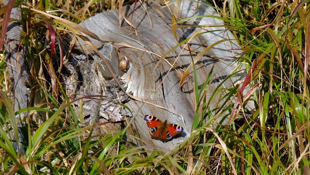 Umso bunter wirkt in diesem Grau das Tagpfauenauge.