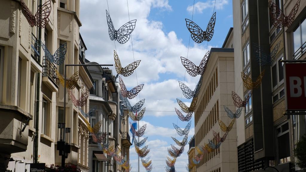 Heute morgen sind wir um 8:40 nach Frankfurt geflogen, und von dort nach ein paar Stunden Aufenthalt weiter nach Luxemburg. – Wir hätten auch gerne den Zug genommen, aber da wären wir um die 8 Stunden unterwegs gewesen …