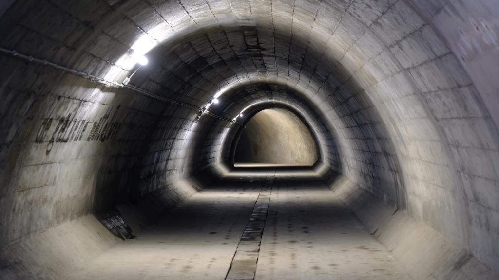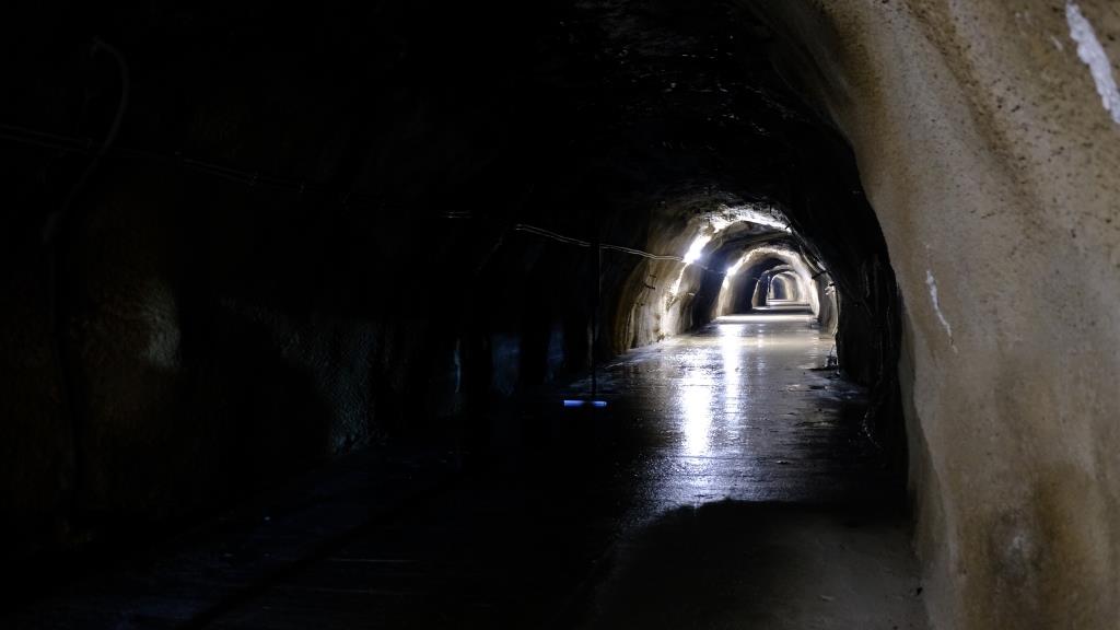 We were so lucky, it was only the two of us and the two young ladies who guided us through the tunnel. It had originally been built for sewage, 1961-1963, later it was also used as a bomb shelter. Here and there you find tiny stalactites.