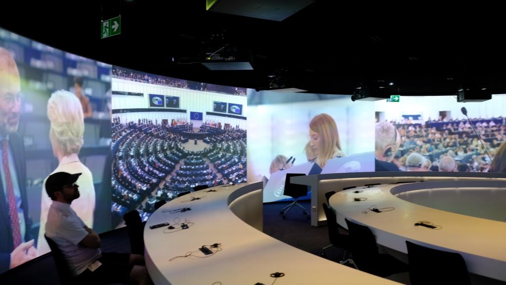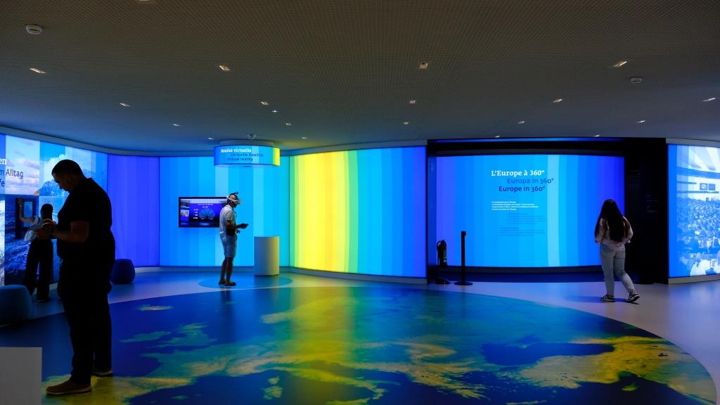 An vielen Displays kann man Informationen abrufen. Über die Länder, Regionen, Ortschaften, darüber, wie die europäischen Institutionen zusammenarbeiten, über die Sitzungen hier im Haus …