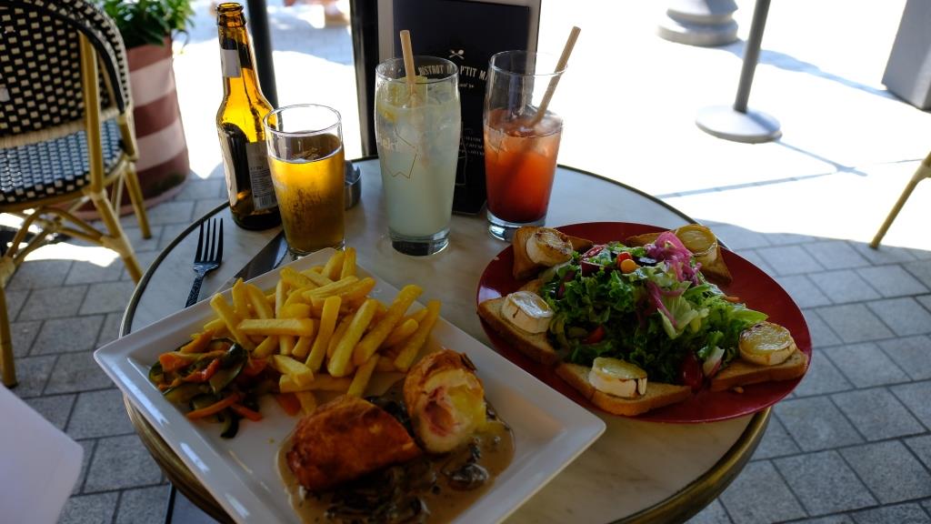 Wieder draußen hat es jetzt 31°C – also machen wir eine Pause, um etwas zu essen und vor allem zu trinken.