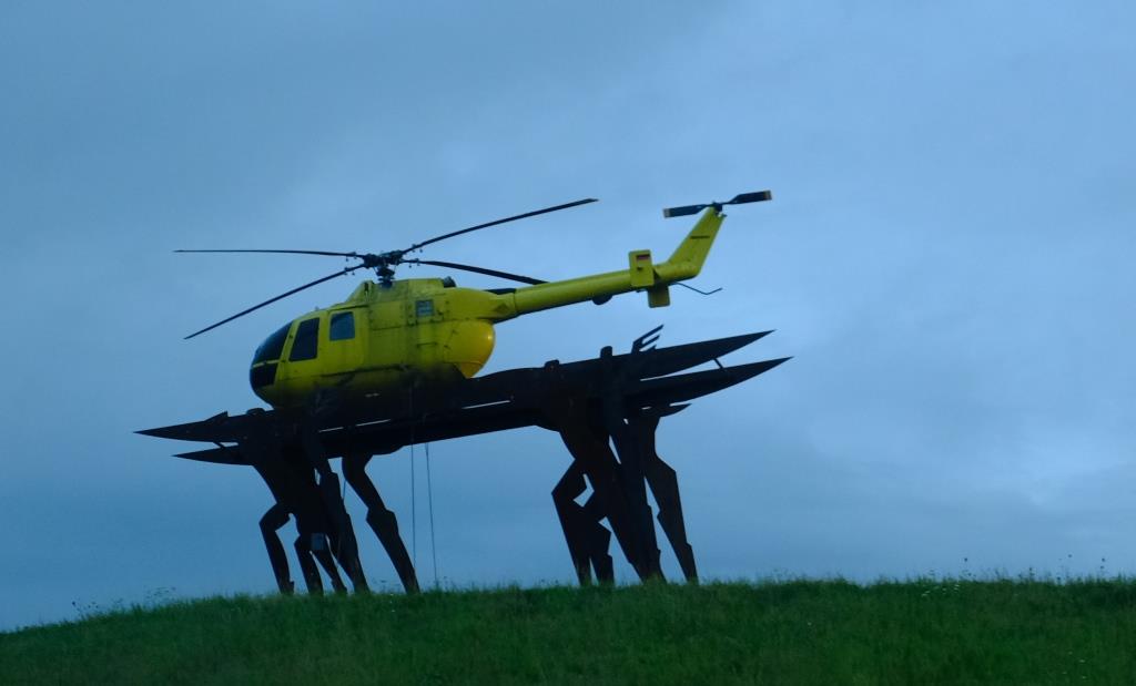 Ganz beflügelt fahren wir in ein langes Wochenende. (Das ist eine 7,5 Meter hohe Skulptur des Künstlers Alfred Gockel.)