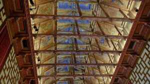 Innen haben wir – nach den tollen Deckengewölben in Madrid – auch hier gleich mal nach oben gesehen. Hm … nicht schlecht, aber sieht ein bisschen aus wie vollgeklebt mit Kaugummi, findet Ihr nicht?