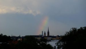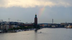 Natürlich ist auch Gamla Stan von Wasser umgeben. Und von der richtigen Stelle aus sieht man mal wieder das Rathaus, ein alter Bekannter 😉